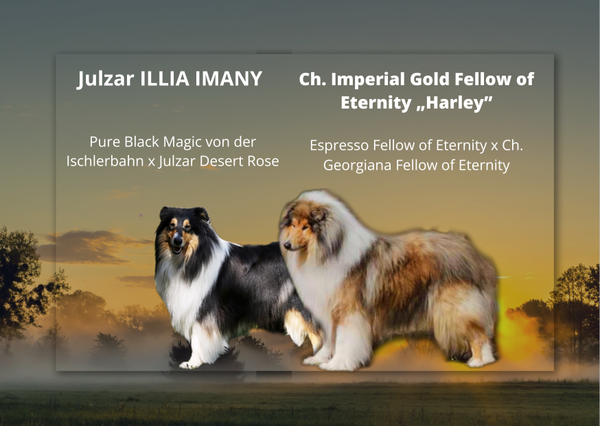 Vrh B Šteniatka vznikli spojením Julzar ILLIA IMANY x Ch. Imperial Gold Fellow of Eternity „Harley“ Ide o druhé spojenie, z ktorého vznikli dva krásne psíky. Na svet prišli 20.05.2024. So sestrami Rodičia